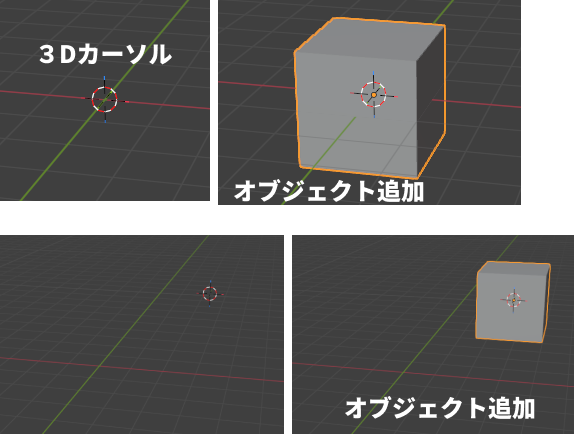 3Dカーソルはオブジェクトが追加される場所