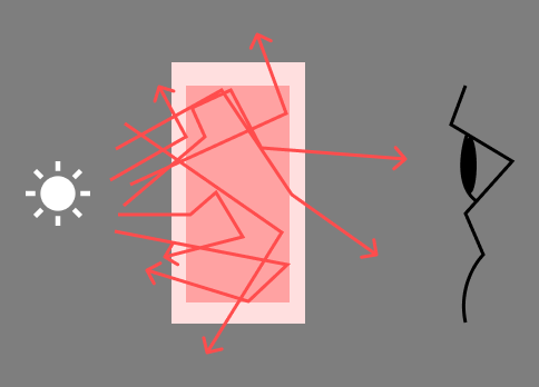 光が表面の下に入り、内部の色を反射するので、内部の色が鮮やかに見えるようになります。