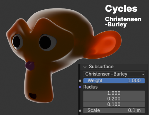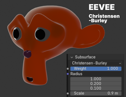 ※EEVEE使用不可の二つは、EEVEEのときに使うと自動的にChristensen-Burley方式に変換されます。