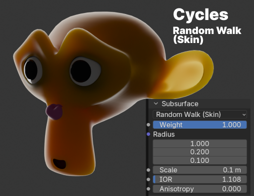 半径(Radius)を「カラー・異方性・IOR」などから自動で調整。肌の色をリアルに再現するように特化したメソッド。