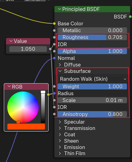 - Roughness(Subsurface Scatteringノードのみ)