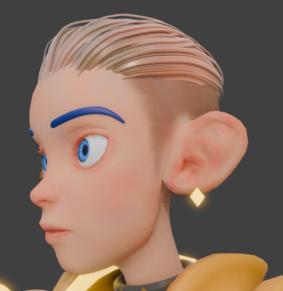 やはり目の周辺など、メッシュが中に折れているところで補色が出るバグが出現していますが、3種類の中で一番リアルな肌の複雑な表現ができています。