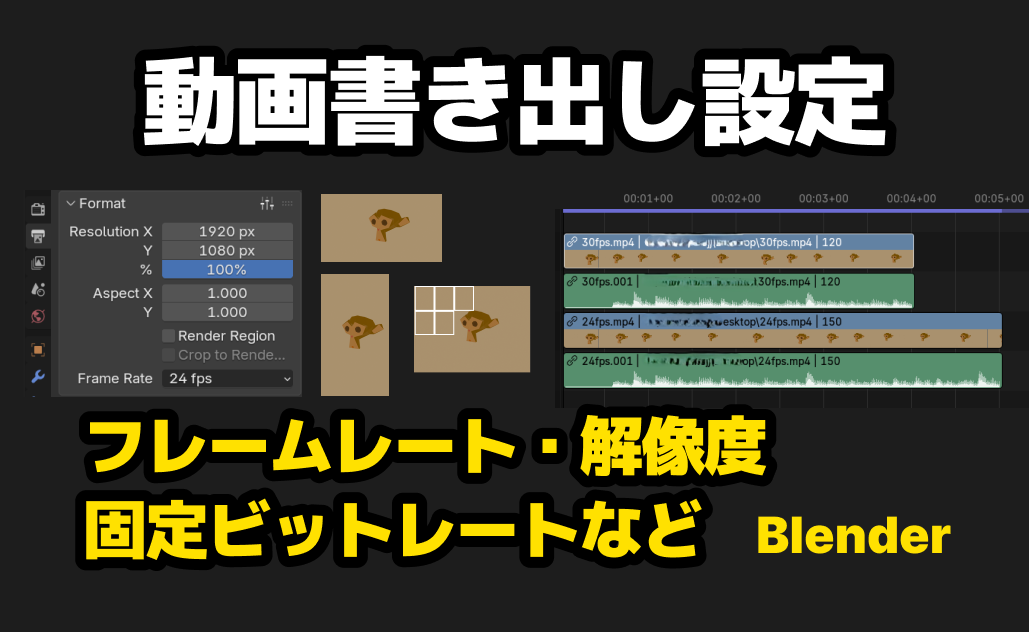 この記事では、Blenderを使って動画を書き出す際に、適切なフレームレート、解像度の設定の仕方や、自分でビットレートを指定してエクスポートする方法について解説します。