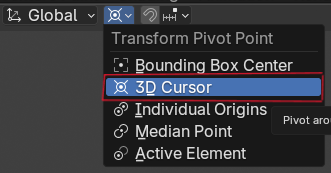 画面上部メニューにTransform Pivot Pointのオプションがあります。3D Cursorに変更すると、ワールド中心にある赤白の輪のカーソルを中心にして拡縮するので調整しやすくなります。