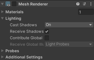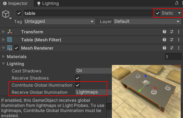 ちなみにMesh Rendererのチェックを外して非表示にすると、自動的にContribute GIはオフになり、ライトベイクもされません。