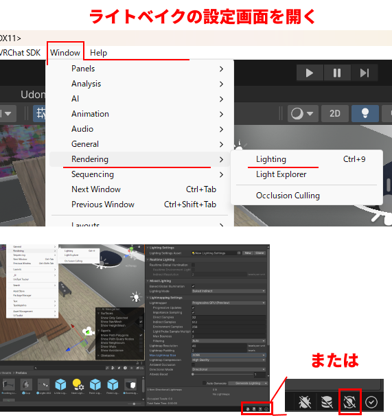 UnityでのVRChatワールド作成時に必要になる作業のひとつがライトベイクです。