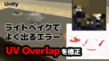 これはUVが重なっているところがあるよという注意です。UVが重なってしまうと明暗がおかしくなったりへんな形が出てしまったりするので、どこかおかしなところがないか確認する必要があります。以下に修正方法などまとめていますので修正するときの参考にしてみてください。