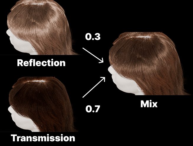 髪の表面で光が跳ね返る成分。髪のつやや光沢を表現します。 - Transmission(透過)
