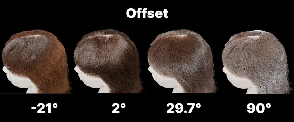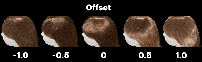 キューティクルの角度を変えることで、ハイライト(グリント)の傾きを調整。人間の髪は低めが自然。