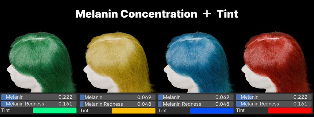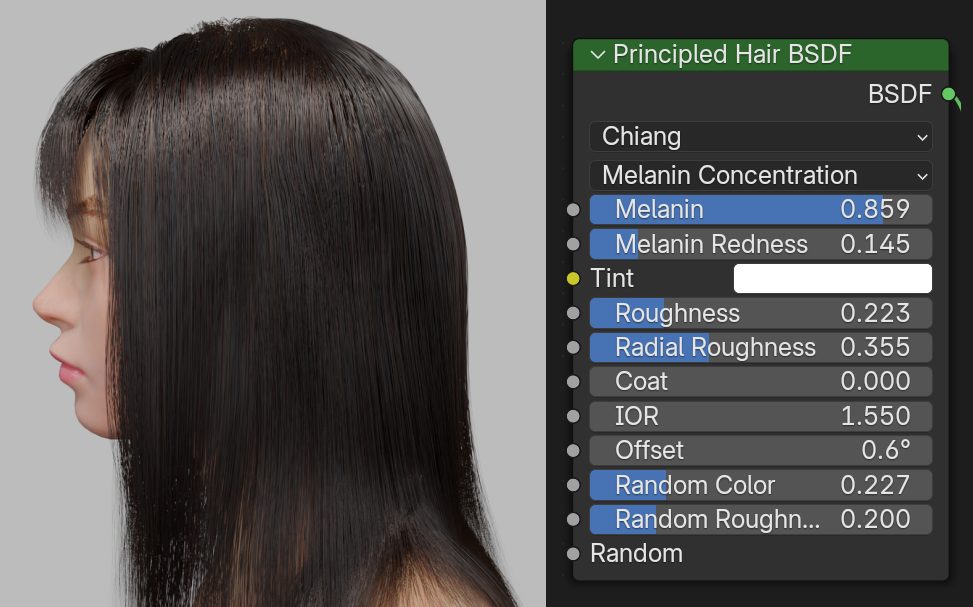 リアル系の髪や毛皮は Melaninモード+Chiangモデル が扱いやすいです。
