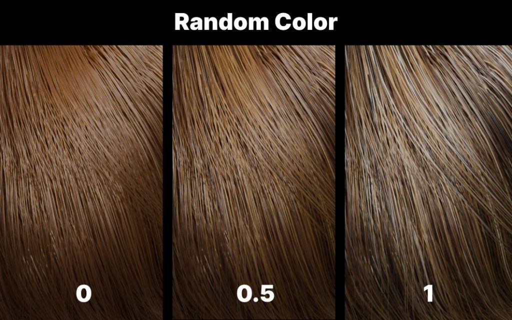 髪は一本一本の違いが最小限である方がリアルに見え、このノードでは Random Color と Random Roughness を使って、髪の「色」と「粗さ」にランダム性を与えられます。※髪色のランダムさはMelanin Concentrationモデルにしかない。