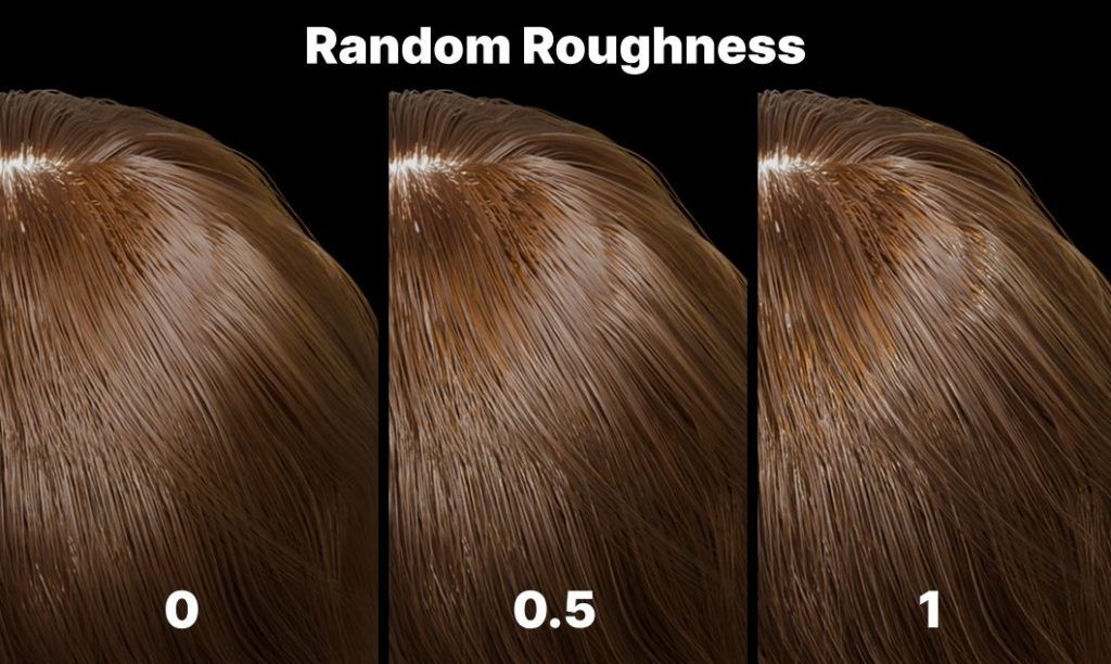 髪のラフネスにランダムさを追加。光の反射に微妙な違いを作る。