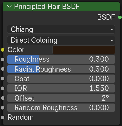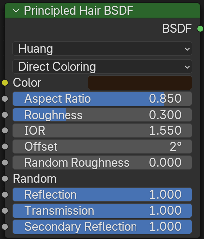 Principled Hair BSDF は、髪や毛皮をリアルにレンダリングするための 物理ベースのシェーダー で、自然な髪の表現を簡単に作れます。