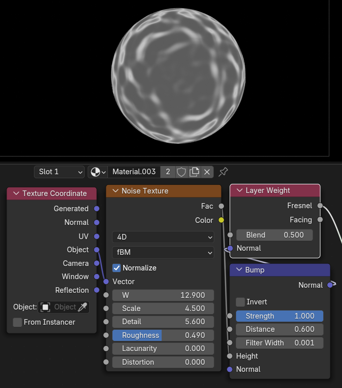 Normal入力は、テクスチャやBumpノードをつなぐと、出力のパターンを変化させることができます。