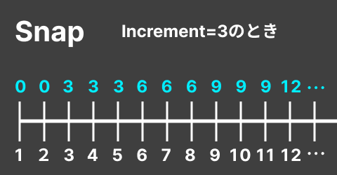Snapノードは、Incrementを3とすると、3の整数倍の値のみを出力するようになります。