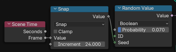 1秒ごとに違う値を出すということは、1秒間の間は同じ数値を出力してほしいということです。一定の間隔で同じ数値を出したい場合はSnapノードを使うことができます。