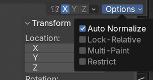 - 左右対称のオブジェクトのとき、片方のウェイトを塗るともう一方も塗ってくれる