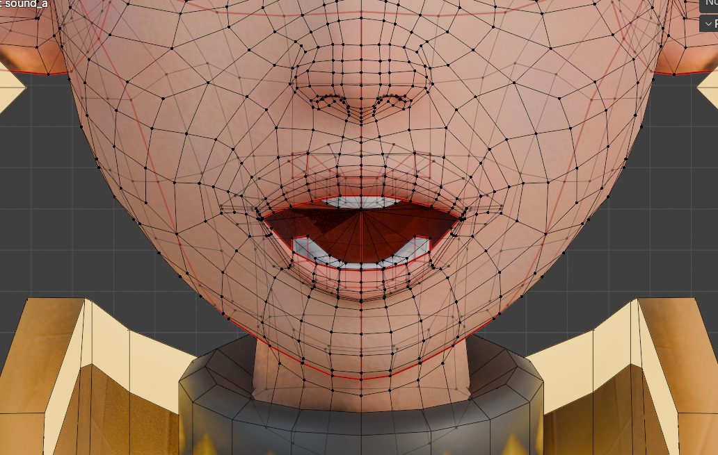 これを繰り返し、a,i,u,e,oの五種類のシェイプキーを作ってみてください。口だけじゃなくて、耳や、動かしたいところを動かしてみて構いません。このキャラは「お」のときにかならず鼻が動くんだ!みたいな謎キャラとか作れます。ただ、トラッキングとかを後でやる予定なら無難に口元だけにしといた方がいいかもしれません。(頂点を消したり増やしたりはできません。移動、拡縮、回転などなら良いです。)