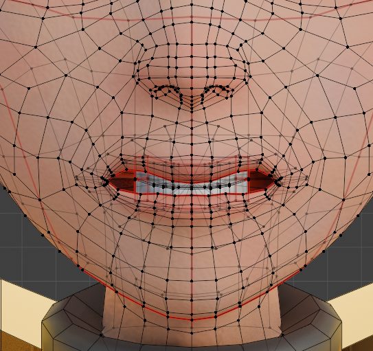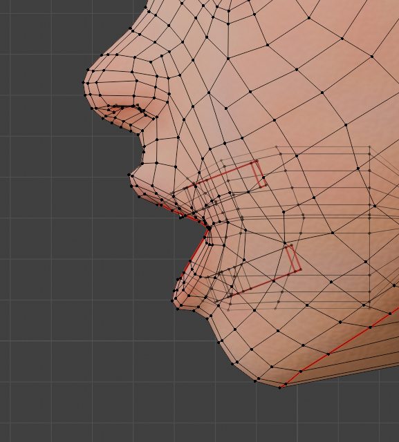 編集モードで口を少し横に広げて「い」の形を作り、オブジェクトモードに戻ります。