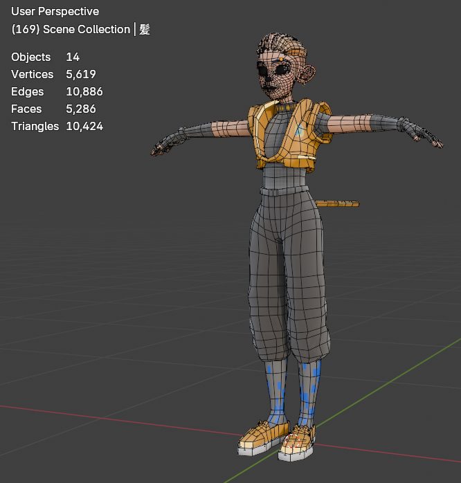 - 隠れているところはどんどん削る…服の下のメッシュ、髪で隠れた頭部のメッシュなども削りまくると軽くなります。(服を着せ替えしたい場合など除く)