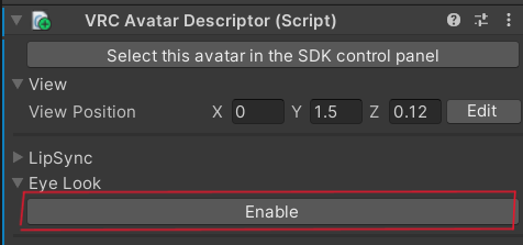 これもAvator Descriptorにある設定ですが、目の動きを自動でつけてくれる設定です。上下左右を見たり、まばたきのアニメーションを設定します。