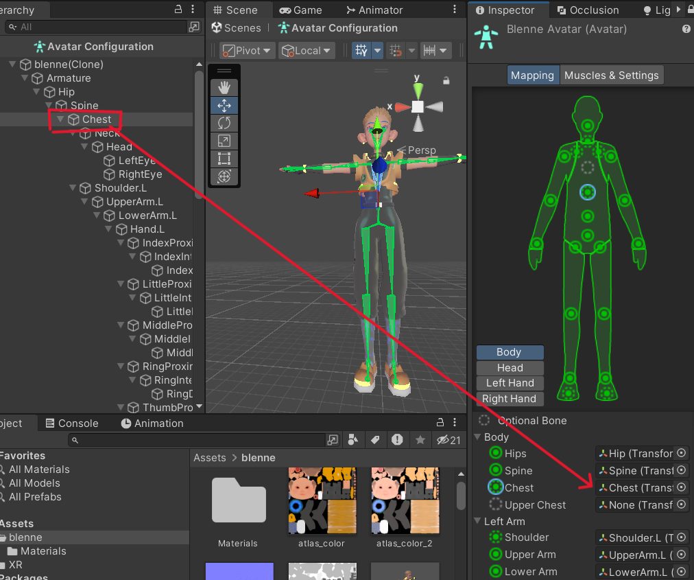 右図だとChestのボーンを作ったのに認識されてません。(認識されてないボーンは黒くなっています。)