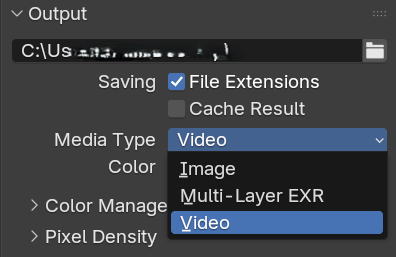 Blender5.0の設定画面。File FormatがMedia Typeという項目に変わっています。動画を書き出したい場合はVideoにすればいいですね。わかりやすくなっています。