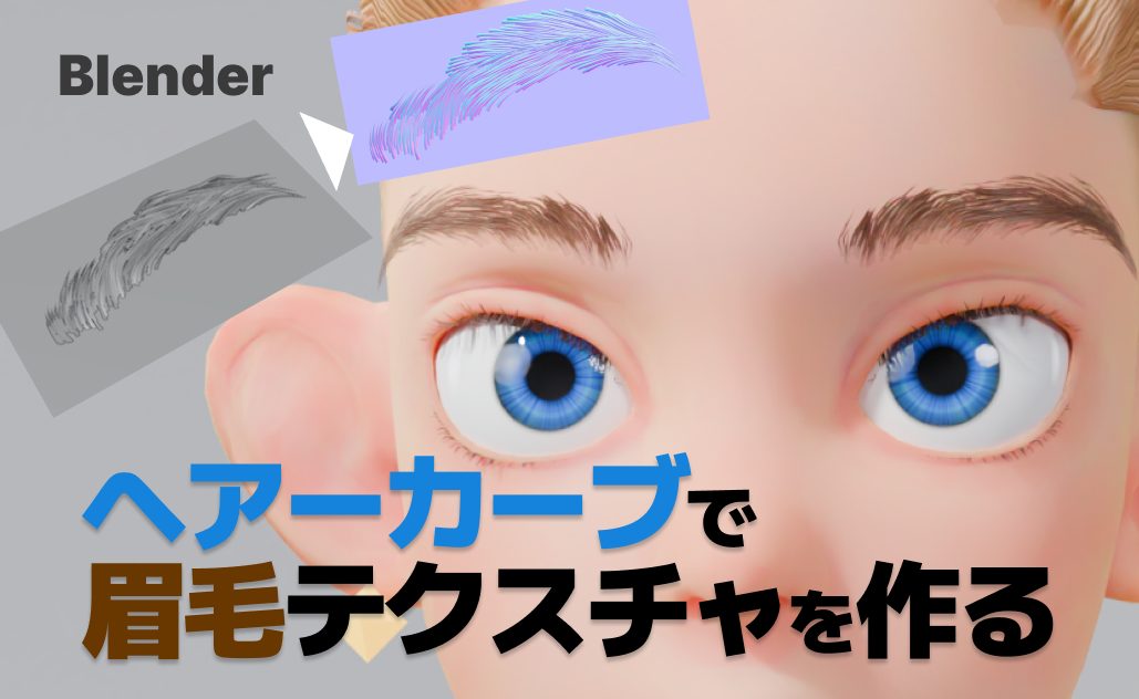 この記事は、Blenderでヘアーカーブでセミリアルな眉毛テクスチャを作成する方法を解説している中級者向けの記事です。