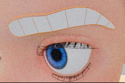 今度は眉毛の上からの流れの部分にカーブを生やしていきます。
