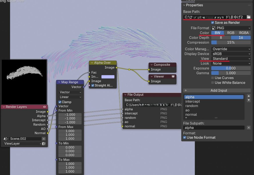 ヘアーカーブで眉毛テクスチャを作る作業工程
