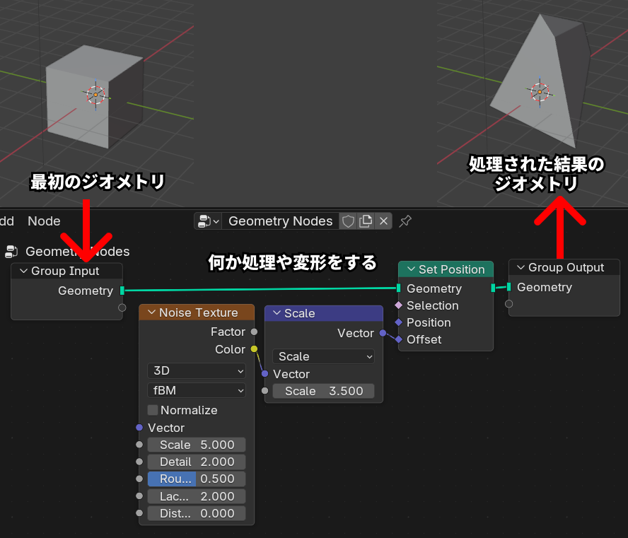 「形を直接いじる」というより、 形状データを加工するレシピを作っていると考えると理解しやすいです。