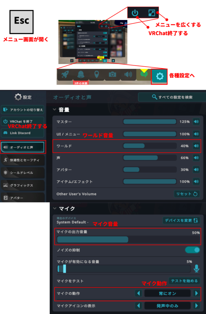 VRChatプレイの簡単な操作方法と設定のポイントなど