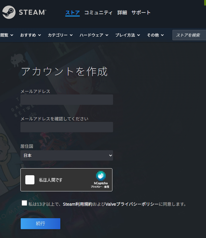 - 13歳以上、利用規約やプライバシーポリシーに同意のチェック