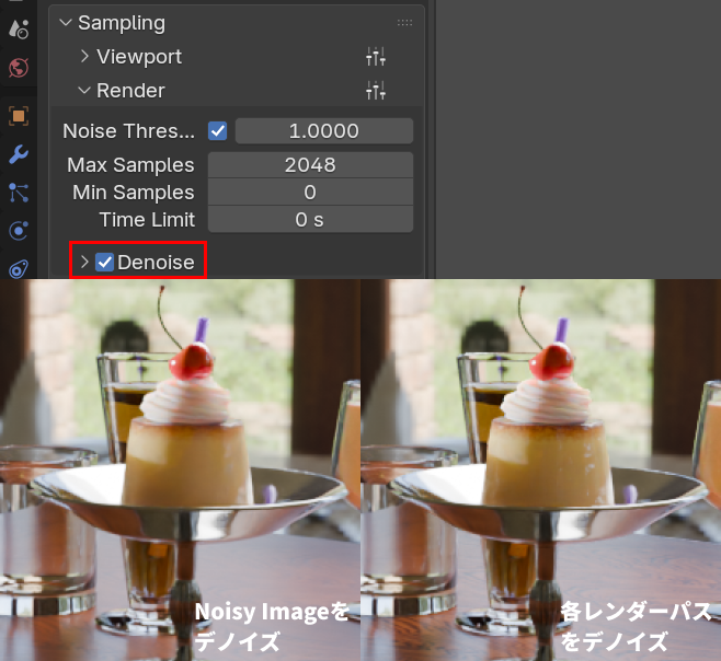 - Denoising Dataパス…Compositor の Denoise ノード用
