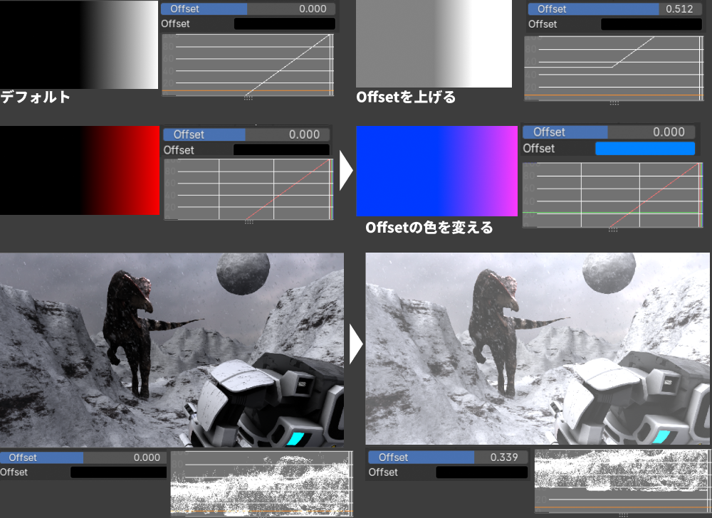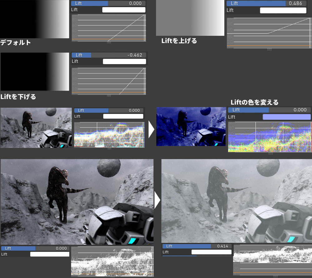 暗部・中間色・明部分をそれぞれ別々に調整。 - Offset / Power / Slope(ASC-CDL)