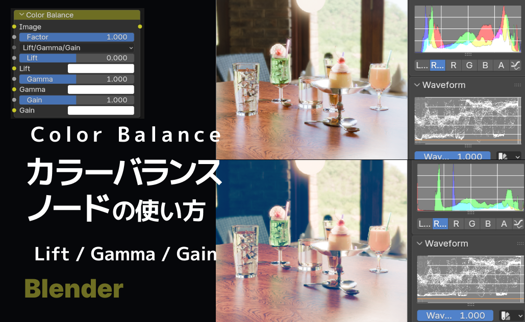 この記事は、Blender、コンポジットでのカラーバランス(Color Balance)ノードの使い方を解説している中級者向けの記事です。