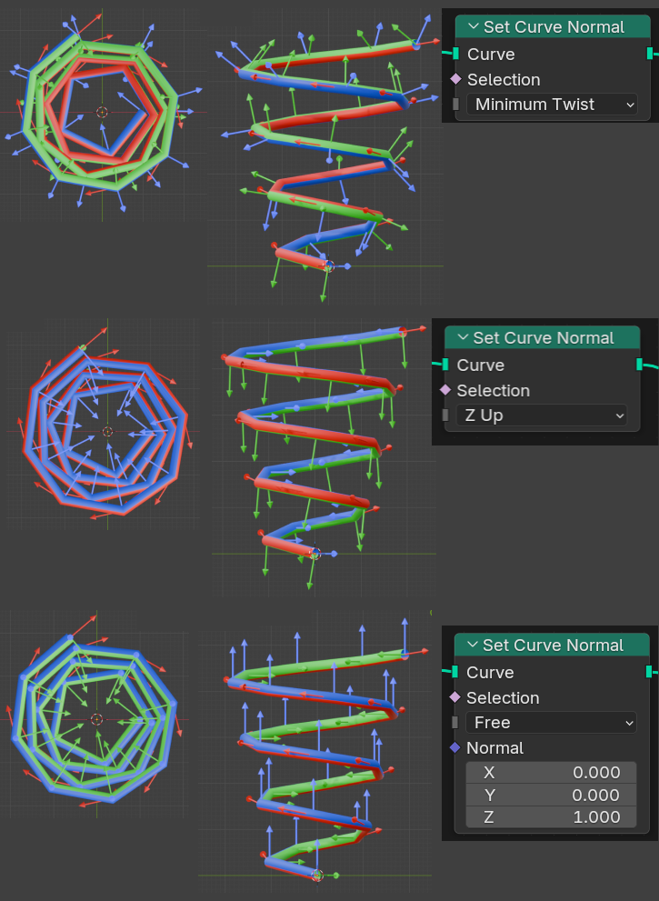 「法線をどう計算するかのルール」を指定するノードです。カーブのねじれで修正したいときはほぼここを修正すれば良いので、使い方をまとめておきました。