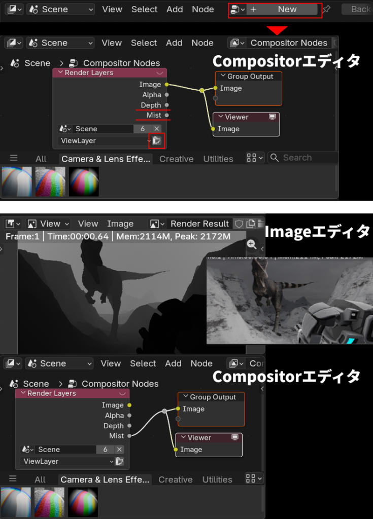 Mist Passの設定が出来たらCompositorエディタに移動します。