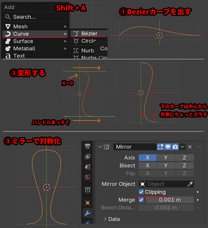 • 下側のカーブは少し外側にズラす