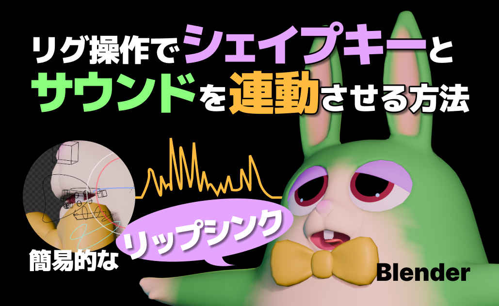 この記事は、Blenderでリグ操作してアニメーションをサウンドに連携させる簡易的なリップシンクの方法を解説している中級者向けの記事です。