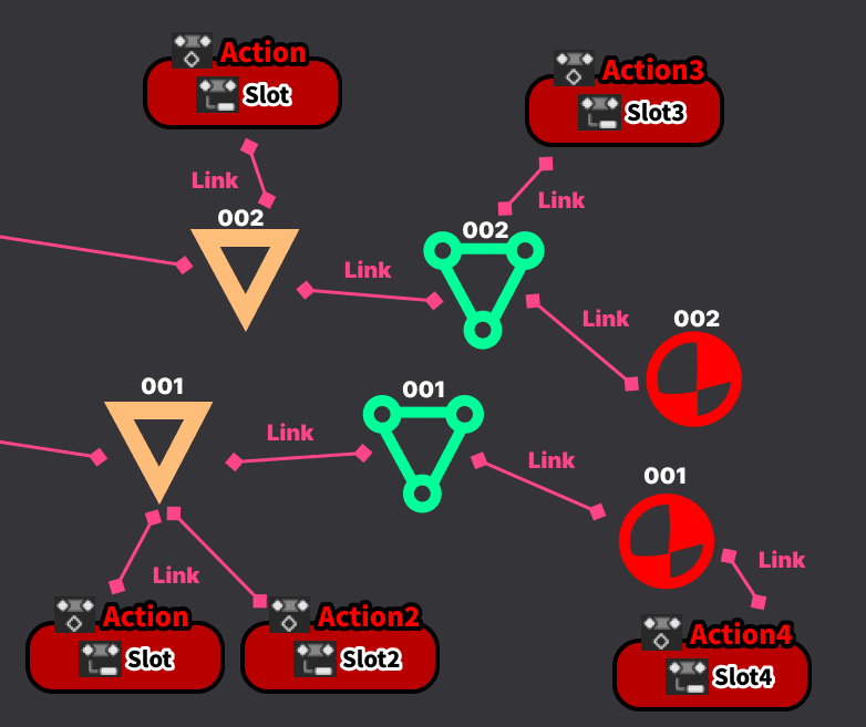 それぞれのデータブロックがアクションをリンクしている