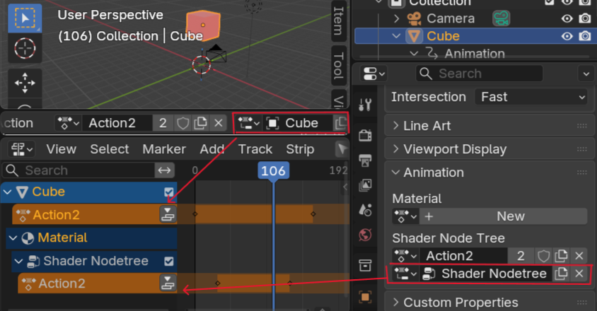 Blenderに任せるだけでなく、アクションとスロットを手動で指定することもできます。