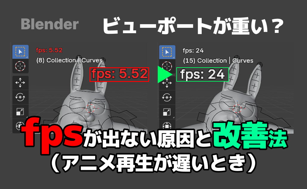 この記事は、Blenderでビューポートのアニメーション再生が遅く、fpsが出ないときにまず試すべき改善方法を解説している初級者向けの記事です。