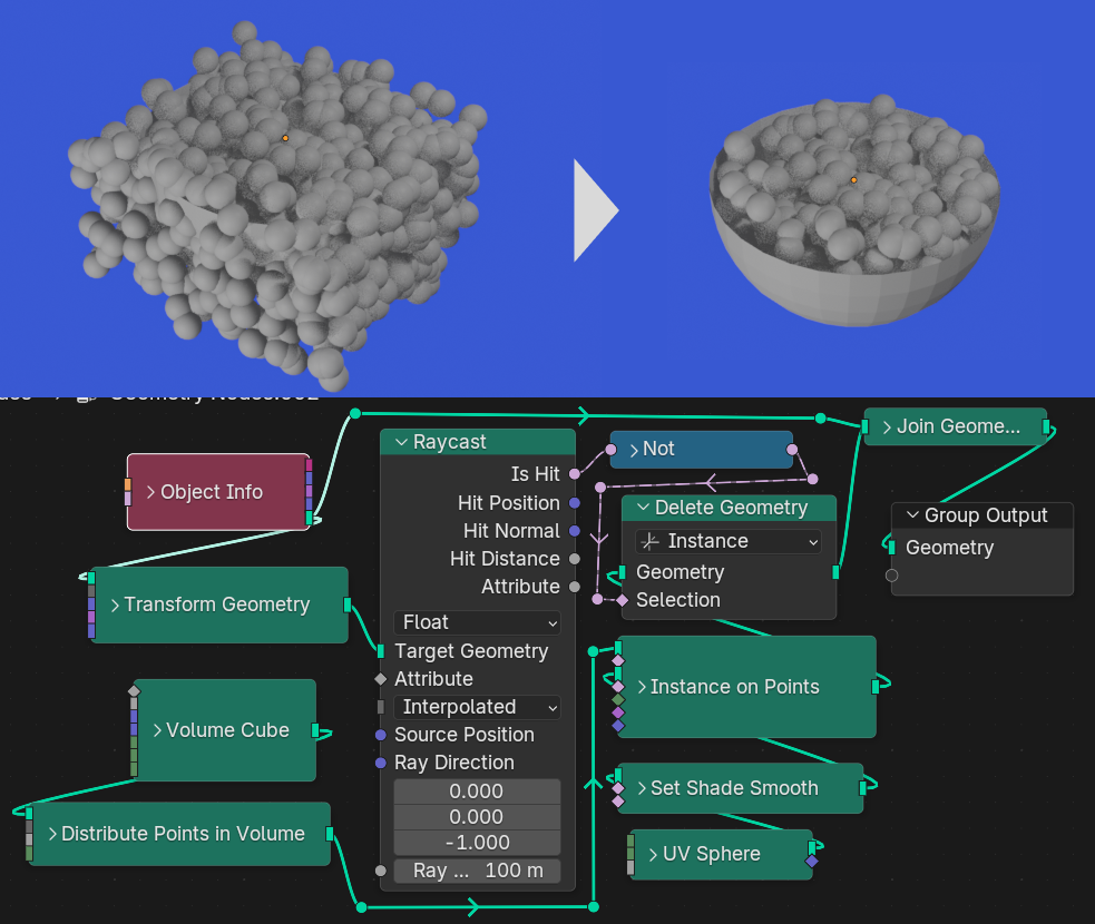 Blenderのジオメトリノードで使うRaycastノードについてのまとめです。