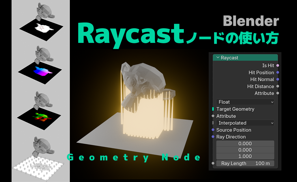 Blenderのジオメトリノードで使うRaycastノードについてのまとめです。