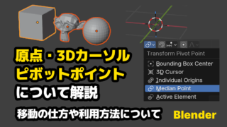 この記事は無料の3DCGソフトBlenderの原点・3Dカーソル・ピボットポイントについて解説している記事です。Blenderを使い始めると、拡大縮小や回転の際にオブジェクトを思うように動かせない、または、オブジェクトを追加したときに、意図...